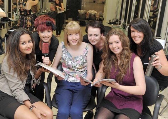 Pictured from left, model Meghan Calderbank, Toni & Guy assistant Kirsty James, model Rhian Davies, assistant Becca Paulett.