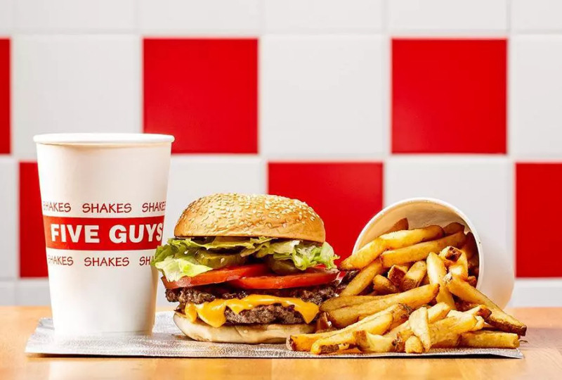 Five Guys is famed for its delicious and mouth-watering, made to order burgers and hot dogs, generous fries and irresistible milkshakes.